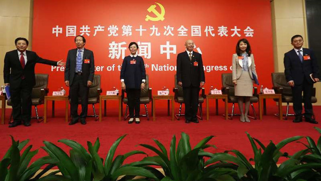 10月22日,中國共產(chǎn)黨第十九次全國代表大會新聞中心舉行記者招待會,請教育部黨組書記、部長陳寶生,民政部黨組書記、部長黃樹賢,人力資源社會保障部黨組書記、部長尹蔚民,住房城鄉(xiāng)建設(shè)部黨組書記、部長王蒙徽,國家衛(wèi)生計生委黨組書記、主任李斌介紹滿足人民新期待,保障改善民生有關(guān)情況,并回答記者提問。
