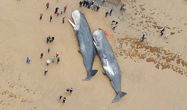 好奇的人們蜂擁般地涌向海灘目睹這些龐然大物。有的還拿起手機(jī)自拍。正在海洋生物學(xué)家對斯凱格內(nèi)斯一頭抹香鯨進(jìn)行檢驗(yàn)時,尸體由于積累過多甲烷氣體竟然發(fā)生了爆炸!一夜之間,斯凱格內(nèi)斯的抹香鯨尸體上竟然被畫滿涂鴉!