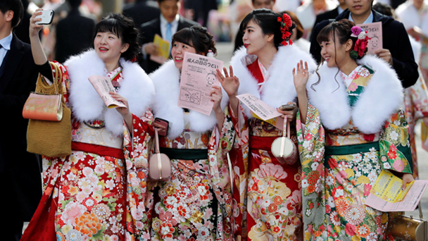 日本“成人節”慶典 傳統和服成靚麗風景線