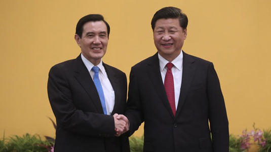中共中央總書記、國家主席習近平于11月7日下午同臺灣方面領導人馬英九在新加坡會面,就進一步推進兩岸關系和平發展交換意見。這是1949年以來兩岸領導人的首次會面。習近平指出,兩岸領導人見面,翻開了兩岸關系歷史性的一頁。