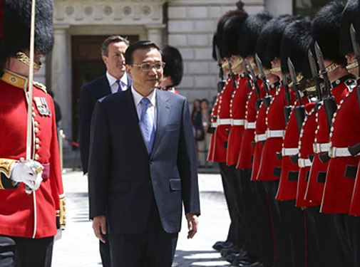 2014年6月,李克強(qiáng)總理正式訪英并舉行中英總理年度會晤,會見了伊麗莎白二世女王,同卡梅倫首相舉行會談,雙方發(fā)表《中華人民共和國政府和大不列顛及北愛爾蘭聯(lián)合王國政府聯(lián)合聲明》。