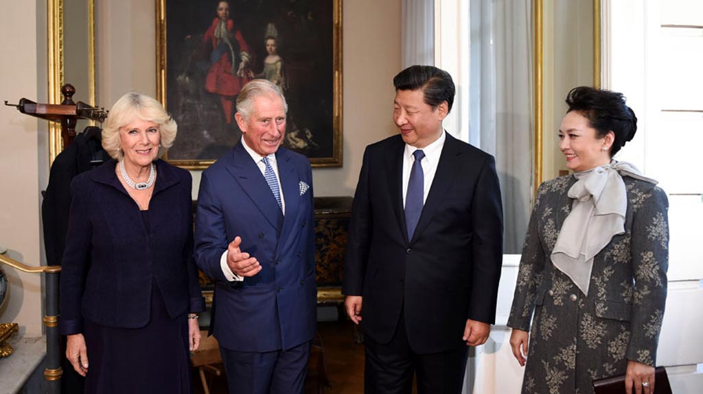10月20日,國家主席習近平和夫人彭麗媛在倫敦會見英國查爾斯王儲夫婦。
