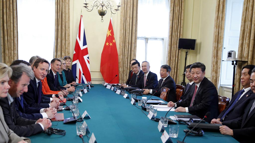10月21日,國家主席習近平和英國首相卡梅倫共同出席在倫敦金融城舉行的中英工商峰會并致辭。