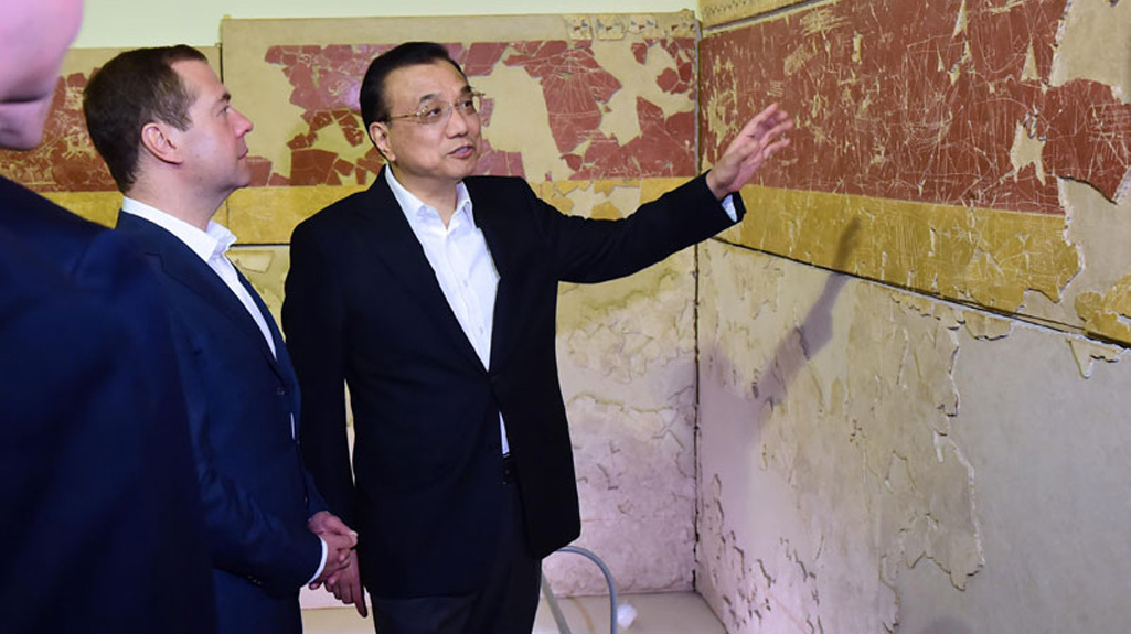 國(guó)務(wù)院總理李克強(qiáng)當(dāng)?shù)貢r(shí)間7日下午在圣彼得堡康斯坦丁宮同俄羅斯總理梅德韋杰夫共同主持中俄總理第二十一次定期會(huì)晤。中俄人文合作委員會(huì)中方主席、國(guó)務(wù)院副總理劉延?xùn)|,中俄總理定期會(huì)晤委員會(huì)中方主席、國(guó)務(wù)院副總理汪洋,以及相關(guān)機(jī)制俄方負(fù)責(zé)人第一副總理舒瓦洛夫、副總理戈洛杰茨、德沃爾科維奇、羅戈津和特魯特涅夫等出席會(huì)晤。