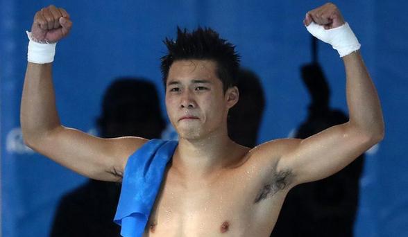 2016里約奧運跳水男子10米跳臺決賽,中國選手陳艾森以總分585.30分完美表現獲得冠軍,另一名中國選手邱波表現同樣出色,第三跳獲得滿分,但因兩次失誤最終位列第六。