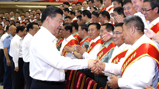 7月29日,黨和國(guó)家領(lǐng)導(dǎo)人習(xí)近平、李克強(qiáng)等在北京會(huì)見(jiàn)全國(guó)雙擁模范城(縣)命名暨雙擁模范單位和個(gè)人表彰大會(huì)代表。新華社記者 鞠鵬 攝