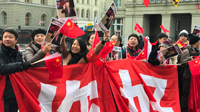 2017年1月15日,瑞士伯爾尼,當(dāng)?shù)厝A人華僑,在路旁迎接中國國家主席習(xí)近平的到來