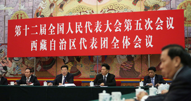 2017年3月10日,十二屆全國人大五次會議西藏代表團舉行全體會議。