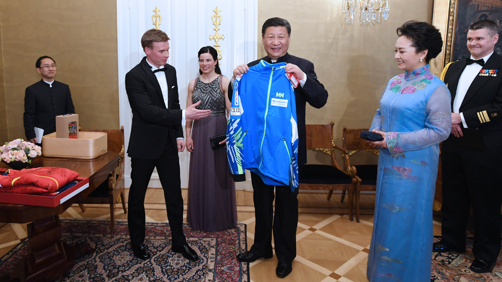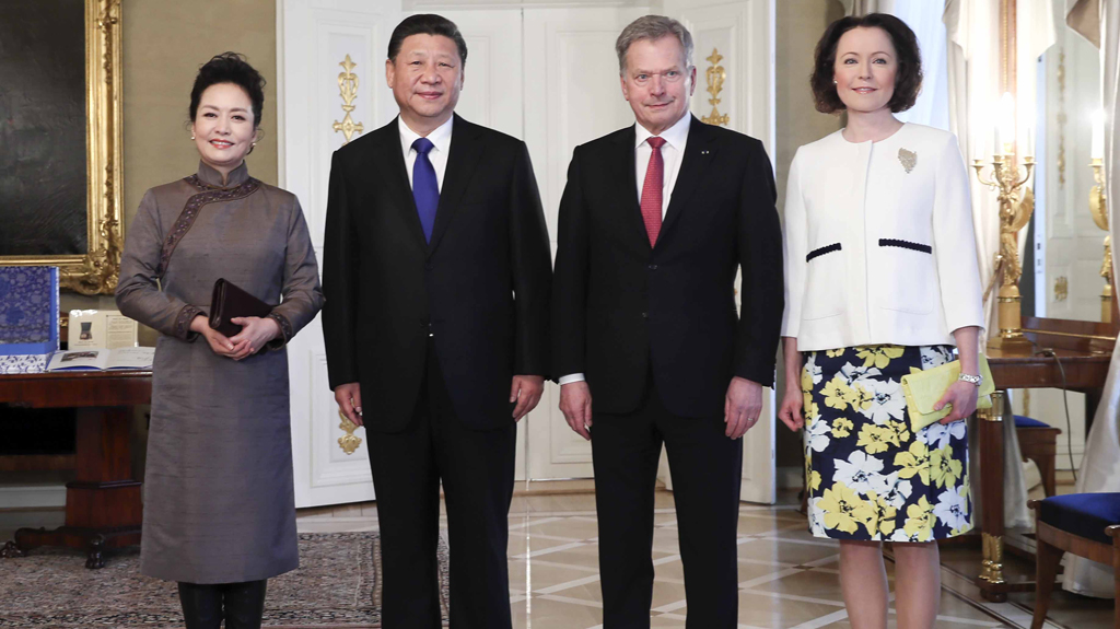 當(dāng)?shù)貢r(shí)間5日晚,國家主席習(xí)近平和芬蘭總統(tǒng)尼尼斯托在赫爾辛基共同會(huì)見剛剛參加完2017年世界花樣滑冰錦標(biāo)賽的中芬兩國冰雪運(yùn)動(dòng)員代表。習(xí)近平夫人彭麗媛和尼尼斯托夫人豪吉?dú)W參加會(huì)見。
