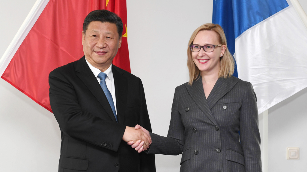 4月5日,國家主席習(xí)近平在赫爾辛基會(huì)見芬蘭議長洛赫拉。