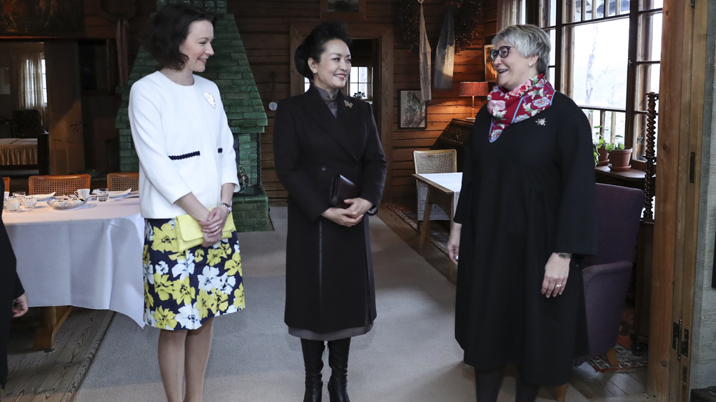 當(dāng)?shù)貢r(shí)間4月5日上午,國家主席習(xí)近平夫人彭麗媛參觀位于赫爾辛基以北圖蘇拉湖畔的西貝柳斯故居博物館。