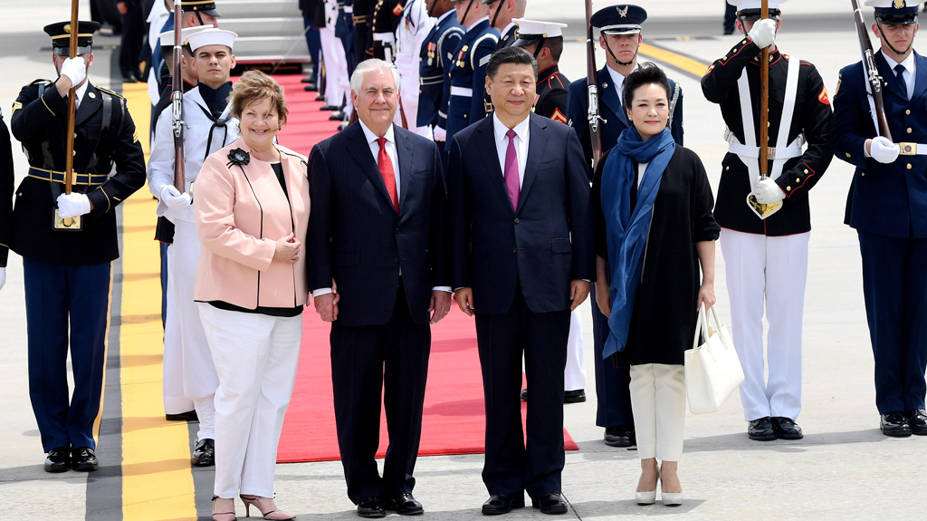當(dāng)?shù)貢r(shí)間4月6日晚,國家主席習(xí)近平和夫人彭麗媛出席美國總統(tǒng)特朗普和夫人梅拉尼婭在美國佛羅里達(dá)州海湖莊園舉行的歡迎晚宴。