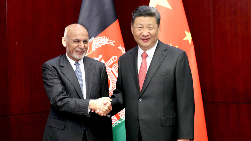 6月8日,國家主席習近平在哈薩克斯坦首都阿斯塔納會見阿富汗總統加尼。