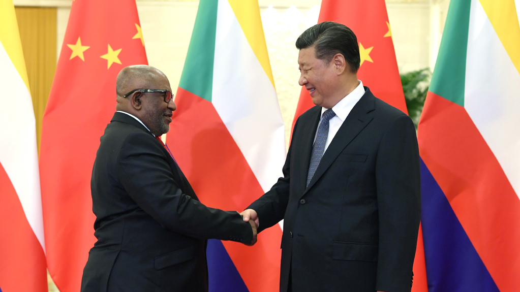 國家主席習近平1日在人民大會堂會見科摩羅總統阿扎利。
