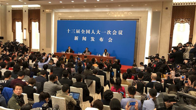 2018年3月4日, 十三屆全國人大一次會議在北京人民大會堂新聞發布廳舉行新聞發布會,大會發言人張業遂就大會議程和人大工作相關的問題回答中外記者的提問。