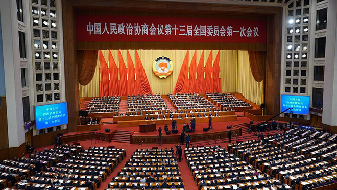 3月3日,中國人民政治協商會議第十三屆全國委員會第一次會議在北京人民大會堂開幕。
