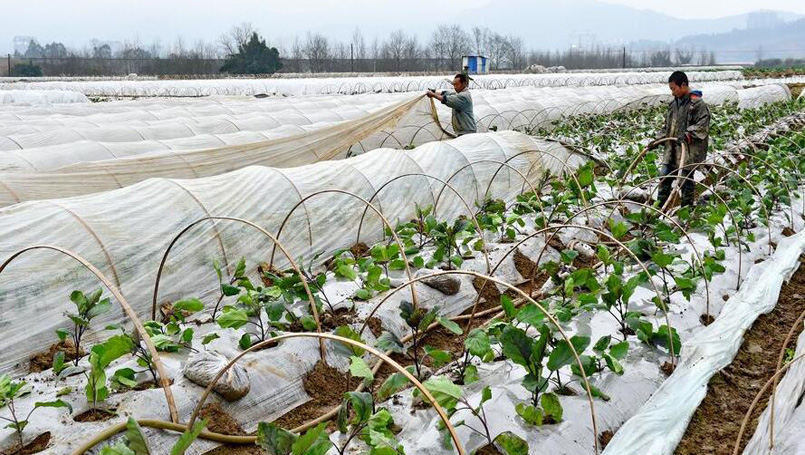 1月10日,鐘漢明(前)和妻子搬運紅豆杉苗。45歲的鐘漢明參加了村里的紅豆杉專業(yè)合作社,2016年他家光苗木就賺了近9萬元,加上從事鄉(xiāng)村旅游收入,全年收入十幾萬。