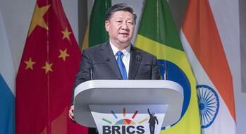 “金磚國家要順應歷史大勢,堅持合作共贏、創新引領、包容普惠、多邊主義,為構建新型國際關系、構建人類命運共同體發揮建設性作用。展望未來,金磚國家繼續同舟共濟、精誠合作、不懈奮斗,定能攜手開創金磚合作更加輝煌的第二個“金色十年”。
