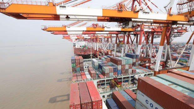 中國古代,位于東南沿海的居民依海而生,船只成為他們與外界貿(mào)易與交流的工具。4月16日,在位于上海洋山深水港的三期碼頭,橋吊在為“中遠(yuǎn)荷蘭”號(hào)進(jìn)行繁忙的裝卸貨作業(yè)。