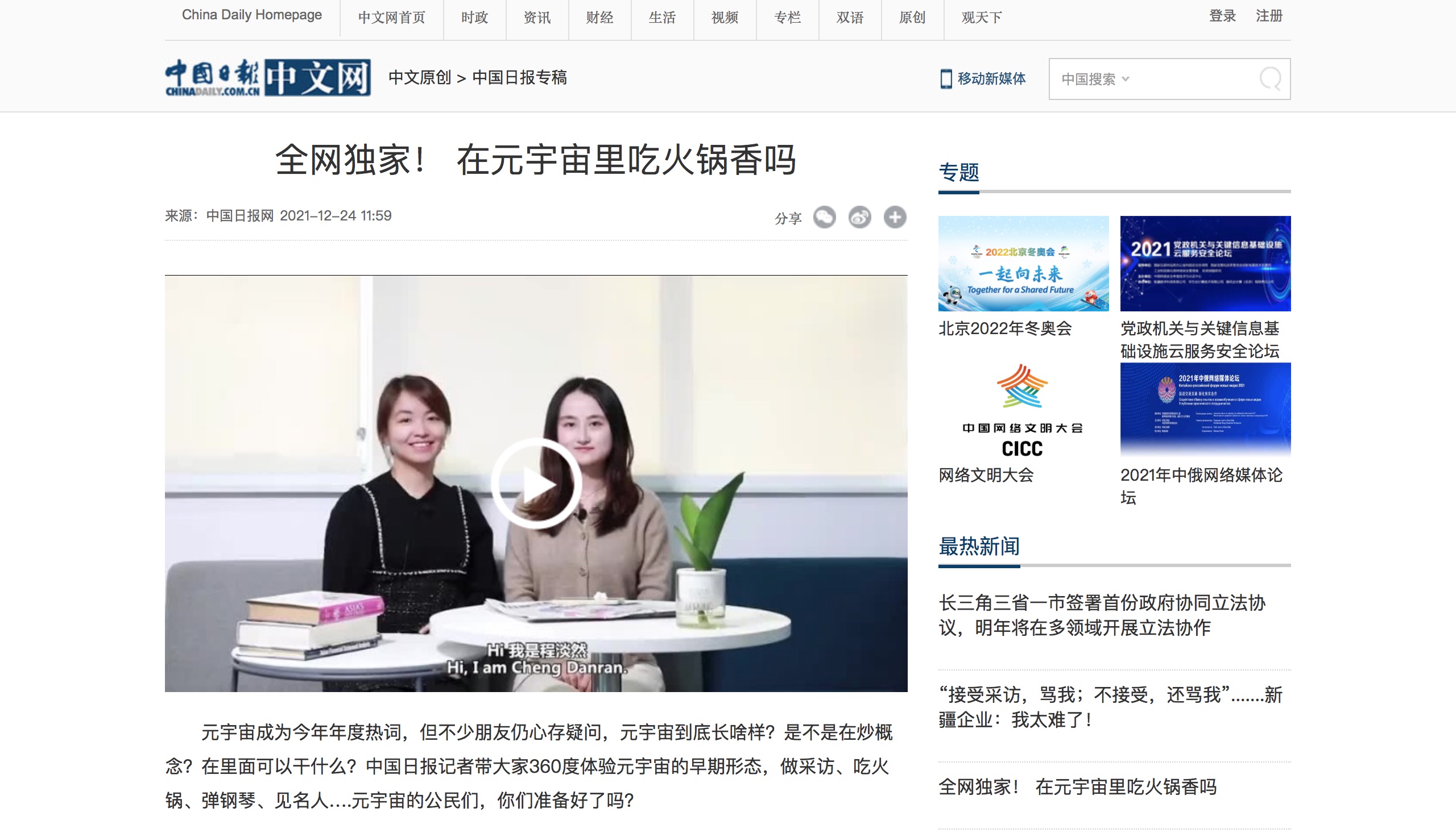 根據《中國新聞獎評選辦法》有關規定,經中國日報社各采編部門、各駐地方機構、各駐境外機構等推薦,并經過社內部評審、編委會集體審議,社領導批準,推薦5件作品參加第32屆中國新聞獎融合報道、應用創新和新媒體新聞專欄專項初評,現予以公示。