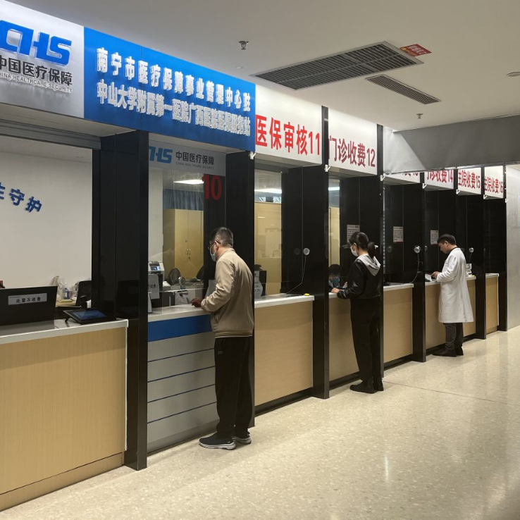 群眾在廣西壯族自治區(qū)南寧市醫(yī)療保障事業(yè)管理中心駐中山大學(xué)附屬第一醫(yī)院廣西醫(yī)院醫(yī)保服務(wù)站咨詢。圖片來源:新華社