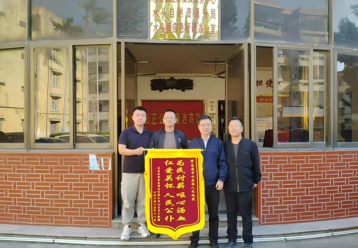 工人代表為水頭鎮政府工作人員獻上錦旗