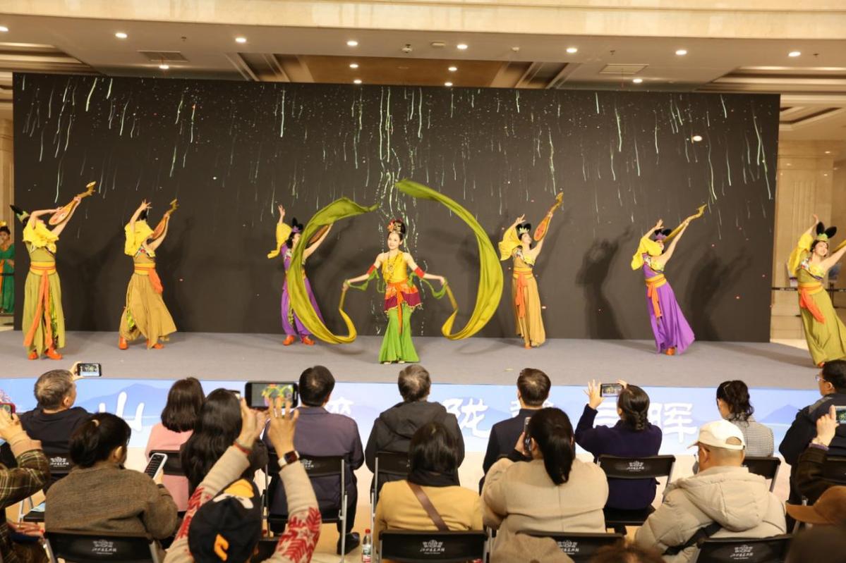 推介會以《交響絲路·如意甘肅》文旅宣傳片開篇,通過鏡頭展現(xiàn)了甘肅得天獨厚的自然稟賦與源遠流長的文化脈絡,為現(xiàn)場嘉賓構建起立體鮮活的甘肅文旅印象。隨后,敦煌主題文藝展演精彩登場,《月下少年》《飛天琵琶·引》《敦煌謠》等節(jié)目與敦煌復原服飾展聯(lián)動呈現(xiàn),具象化傳遞敦煌文化核心魅力與絲路文明的包容特質,為兩地文旅交流營造了濃厚熱烈的氛圍。