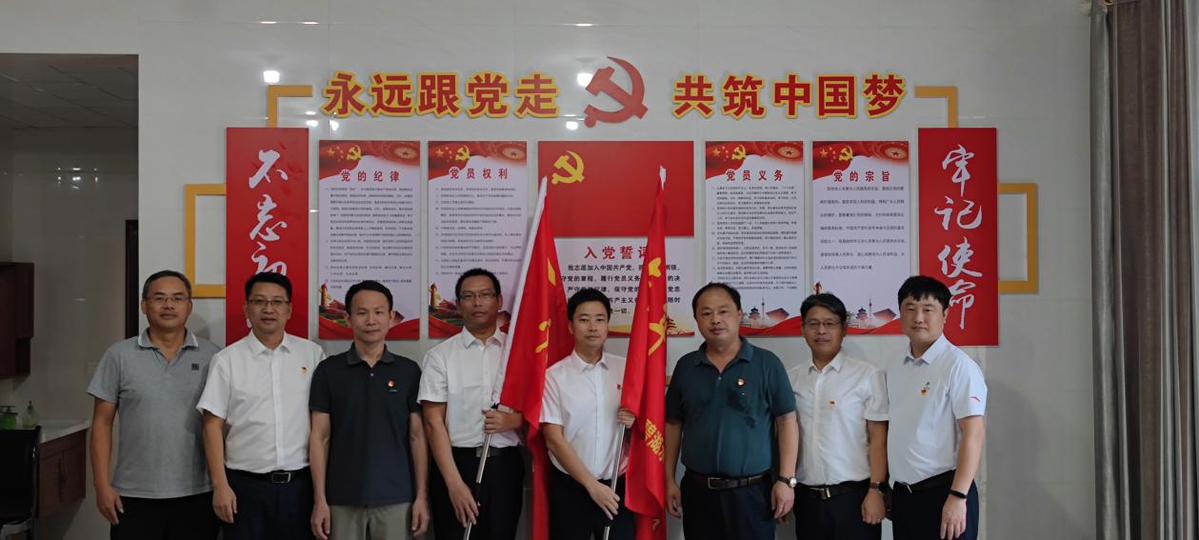 圖2 省水投建設集團黨委書記、董事長周國平為項目支部“黨員突擊隊”授旗,鼓勵支部黨員為推進項目建設發揮黨員先鋒模范作用