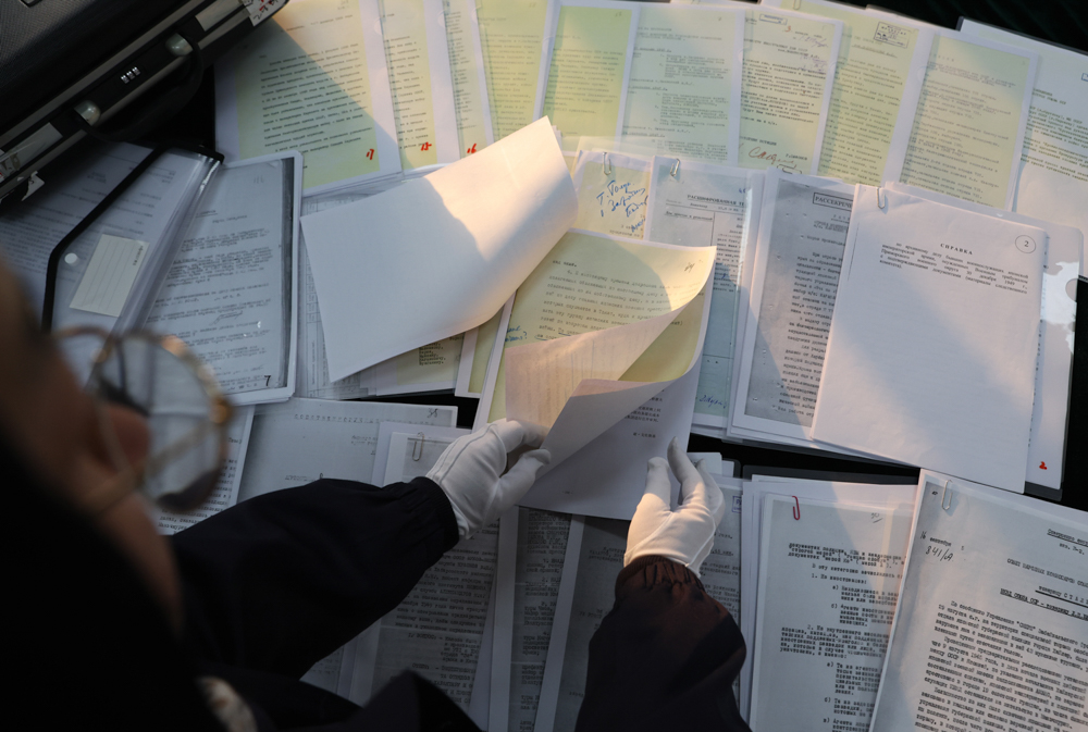 12月10日,中央檔案館工作人員整理俄羅斯轉交我方的蘇聯審訊日本731部隊的解密檔案材料。中國日報記者 鄒紅 攝