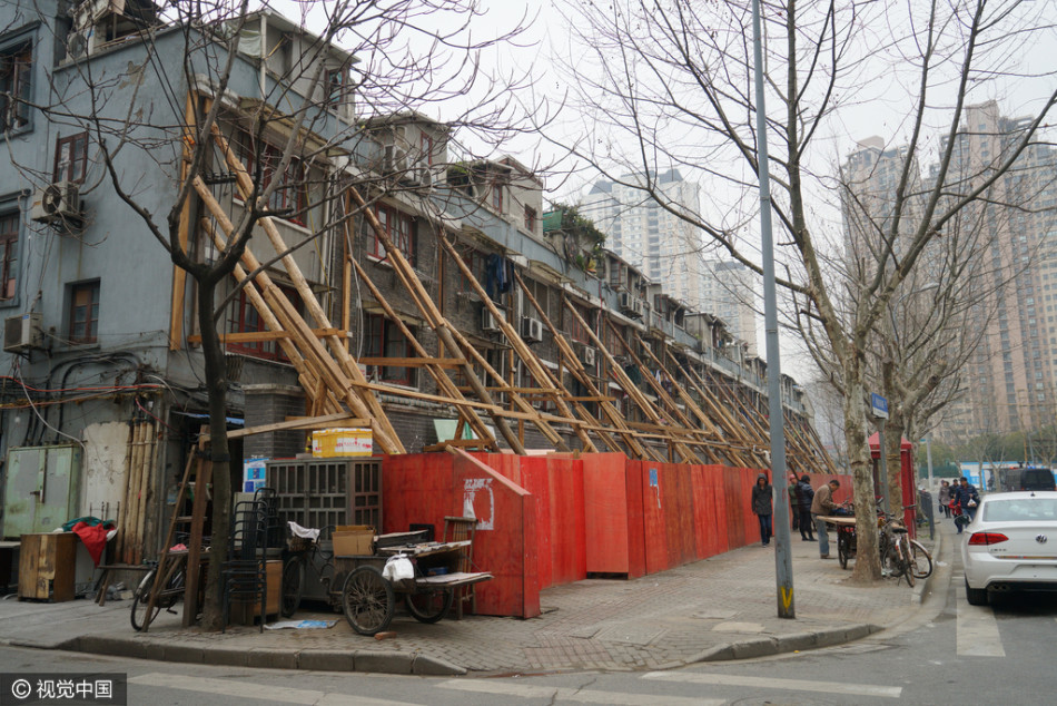居民樓墻體傾斜開裂 僅靠數十根木棒支撐