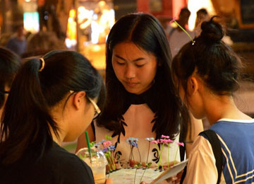 福州大學生自制“豆芽花賣萌發卡”街頭銷售