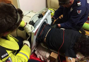 據(jù)英國《每日電訊報(bào)》19日?qǐng)?bào)道,澳大利亞新南威爾士州發(fā)生一起男子被卡在洗衣機(jī)里長達(dá)三小時(shí)無法脫身的事件,趕往救援的消防隊(duì)員們稱他們之前從未見過這樣的事。 被困男子今年22歲,當(dāng)時(shí)他的身體從腿到腰部都卡在了一個(gè)滾筒洗衣機(jī)里,救援人員花了超過一小時(shí)來將他從洗衣機(jī)里弄出來,因?yàn)閷?shí)在卡得很緊,他們只能將洗衣機(jī)部件一一拆除。