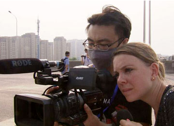 8月17日下午3點左右,天津爆炸事故現場新聞中心組織60多家媒體進入天津爆炸核心區采訪。媒體記者在距核心現場三四百米的立交橋上集中采訪。圖為媒體記者在距核心現場進行集中采訪。圖為媒體記者在距核心現場進行集中采訪。