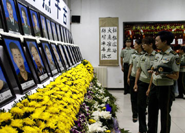 2015年8月18日上午,在天津濱海新區開發區消防支隊,社會各界人士、消防官兵和遇難者家屬舉行哀悼儀式,悼念在天津濱海新區爆炸事件中不幸犧牲的消防官兵。
