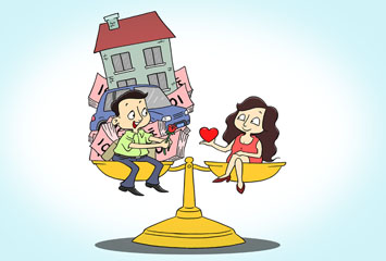 在現代的擇偶條件中,金錢所占的比重越來越大,而愛情則變得可有可無。