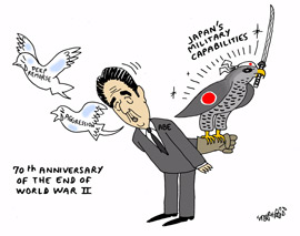 日本首相安倍晉三發表戰后70周年談話,避重就輕,欠缺反省。