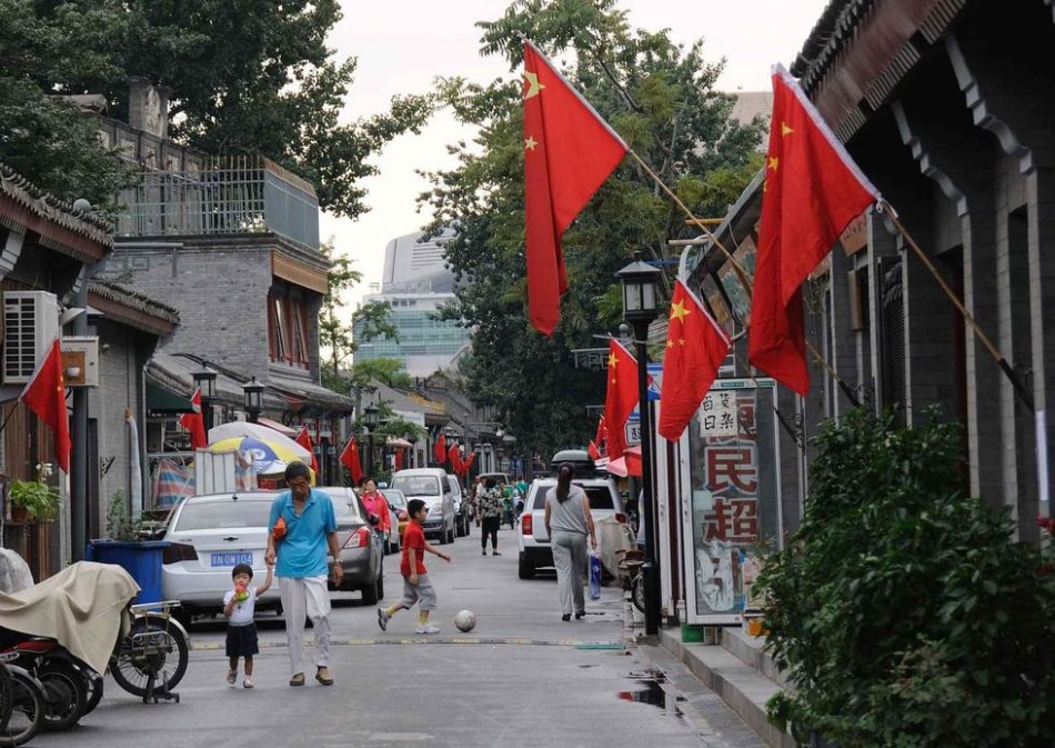 9月1日,北京,大街小巷掛上了國旗,據悉,從當日起至9月5日,北京天安門廣場周邊高大建筑物將全部插掛彩旗,全市各街道、社區、單位等將懸掛國旗,以此慶祝中國人民抗日戰爭暨世界反法西斯戰爭勝利70周年。