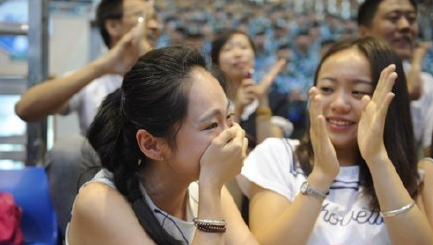 西北工業大學2010級電子信息學院探測制導畢業生蘇敬參加了閱兵方隊,蘇敬的女友觀看閱兵式流下激動的淚水。其女友稱,他們已半年沒見面,蘇敬更是一年未回家,但一切都值得。女生流淚。5000余師生觀看閱兵式。