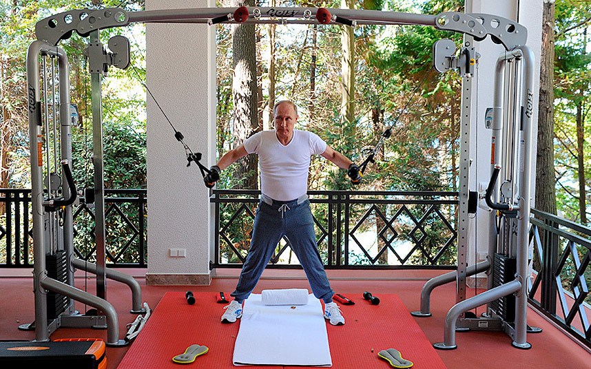 在黑??死锩讈喐劭谥劓側咚雇胁柍俗詈撏⒓訉嶒?。2012年,俄羅斯鐵路研究中心的展覽上,普京現場試用AK-47半自動步槍復制品。普京總統鏡頭感極強,在西伯利亞度假騎馬也不忘展示他姣好的身材。