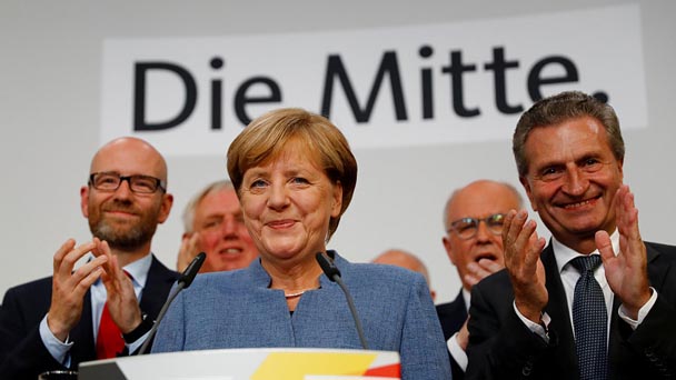 根據(jù)德國電視一臺(tái)當(dāng)晚21時(shí)50分公布的最新出口民調(diào)顯示,默克爾領(lǐng)導(dǎo)的聯(lián)盟黨獲得32.5%的選票,領(lǐng)先其他政黨,獲得連任。