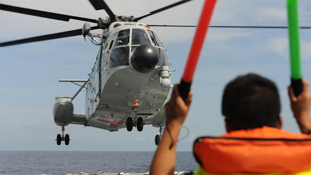 9月7日,在地中海某海域進行的跨晝夜飛行訓(xùn)練中,救護直升機將“落水人員”轉(zhuǎn)運至中國海軍和平方舟醫(yī)院船。當(dāng)?shù)貢r間9月7日14時30分至20時30分,正在執(zhí)行“和諧使命-2017”任務(wù)的海軍和平方舟醫(yī)院船組織救護直升機在地中海某海域進行跨晝夜飛行。
