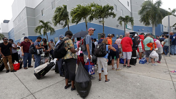 當(dāng)?shù)貢r間2017年9月9日,肆虐加勒比海地區(qū)的颶風(fēng)“艾爾瑪”逼近美國佛羅里達州,佛州埃斯特羅的民眾提前前往臨時避難所避難。