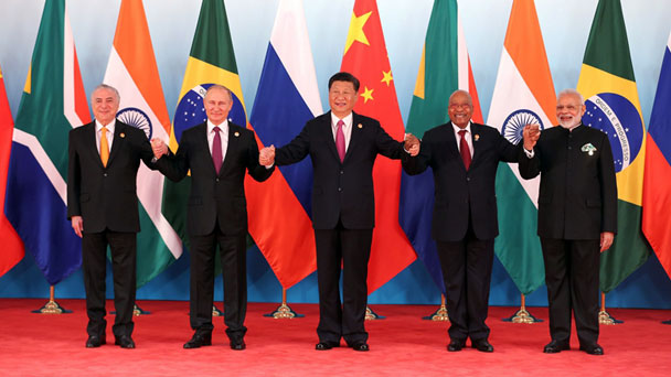 9月4日,國家主席習(xí)近平在廈門出席金磚國家領(lǐng)導(dǎo)人同工商理事會對話會并發(fā)表講話,巴西總統(tǒng)特梅爾、俄羅斯總統(tǒng)普京、印度總理莫迪、南非總統(tǒng)祖馬共同出席。