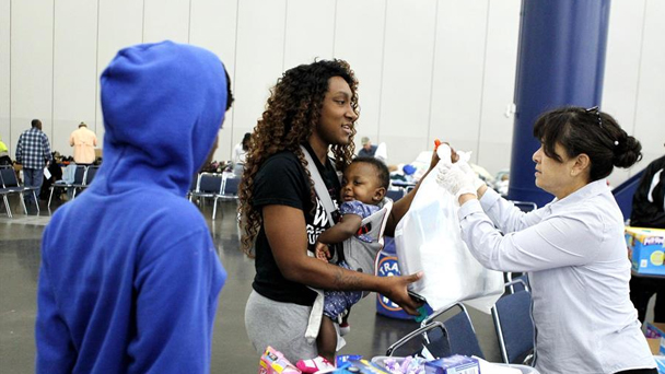 8月30日,在美國得克薩斯州休斯敦,災民在喬治·布朗會議中心避難所內休息。