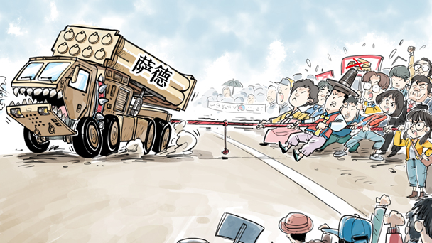 韓國民眾抵制政府部署薩德發射車。