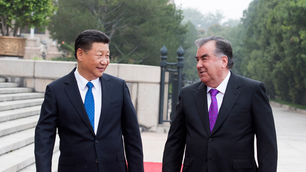 8月31日,國家主席習近平在北京人民大會堂同來華進行國事訪問并出席新興市場國家與發展中國家對話會的塔吉克斯坦總統拉赫蒙舉行會談。