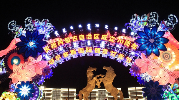 為熱烈慶祝內(nèi)蒙古自治區(qū)成立70周年,迎接9月即將召開的《聯(lián)合國防治荒漠化公約》第十三次締約方大會(huì),為期6個(gè)月的大型國際創(chuàng)意燈光節(jié)活動(dòng)正在鄂爾多斯市康巴什區(qū)開展。新華網(wǎng)發(fā) (張?chǎng)螖z)圖為燈光節(jié)現(xiàn)場(chǎng)。