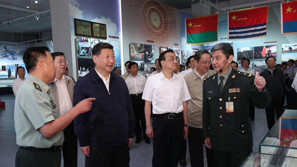7月21日,黨和國家領導人習近平、李克強、張德江、俞正聲、劉云山、王岐山、張高麗等在中國人民革命軍事博物館參觀“銘記光輝歷史 開創強軍偉業——慶祝中國人民解放軍建軍90周年主題展覽”。