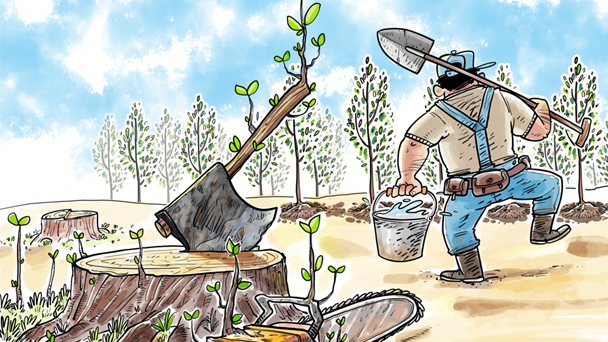 隨著人們的環保意識逐漸覺醒,更多的人放下斧頭拿起鐵鍬,加入保護環境、植樹造林的隊伍。