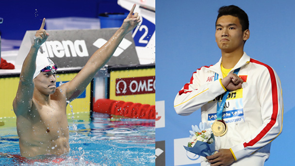 當日,在匈牙利布達佩斯進行的第17屆國際泳聯游泳世錦賽游泳男子200米自由泳決賽中,中國選手孫楊以1分44秒39的成績奪冠。新華社記者 丁旭 攝 新華社布達佩斯7月25日電(記者蘇斌 周欣)中國選手孫楊25日在2017年國際泳聯游泳世錦賽男子200米自由泳決賽中奪冠。